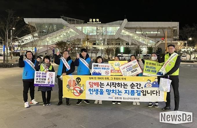 뉴스다 최광묵 기자 | 파주시 금촌2동 청소년지도위원회는 지난 18일 파주보건소 건강증진과와 함께 지역 청소년의 건강 보호와 금연 문화 확산을 위한 합동 금연 홍보활동을 실시했다고 밝혔다.