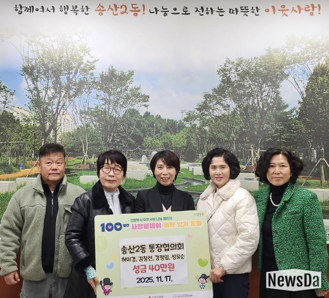 뉴스다 최광묵 기자 | 의정부시 송산2동주민센터는 11월 17일 허미경·김창선·강정임·성유순 통장이 어려운 이웃을 돕기 위해 성금 40만 원을 기탁했다고 밝혔다.