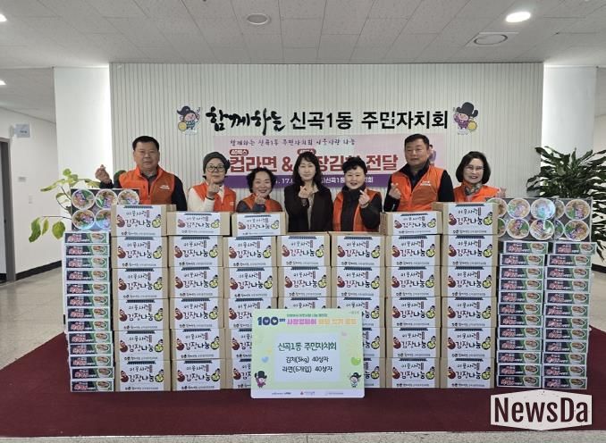 뉴스다 최광묵 기자 | 의정부시 신곡1동주민센터는 11월 17일 신곡1동 주민자치회가 ‘100일간 사랑의 릴레이 배턴 잇기’에 동참해 취약계층을 위한 김장김치 40상자(5kg 단위)와 컵라면 40상자(6개입)를 기부했다고 밝혔다.