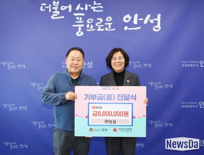 뉴스다 최광묵 기자 | 안성시는 지난 17일, ㈜농심으로부터 지역사회 나눔 실천을 위한 현금 660만 원을 기부받았다고 밝혔다.