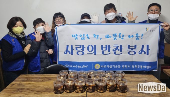 뉴스다 최광묵 기자 | 광명시 광명5동 바르게살기운동위원회는 지난 18일 관내 취약계층 20가구를 대상으로 반찬 나눔 봉사활동을 실시했다.