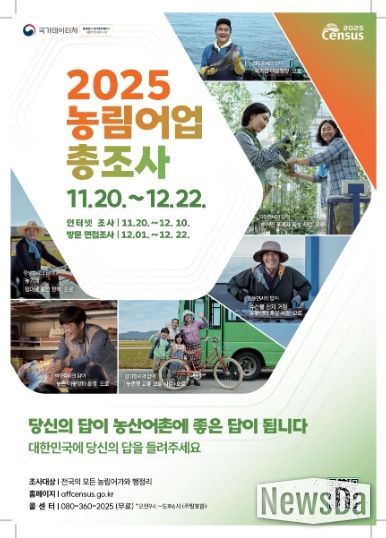 뉴스다 최광묵 기자 | 남양주시는 11월 20일부터 12월 22일까지 농림어가 15,364가구와 행정리 395개 전 지역을 대상으로 ‘2025 농림어업총조사’를 실시한다고 밝혔다.