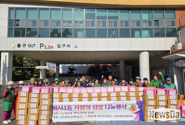 뉴스다 최광묵 기자 | 하남시 미사1동 새마을협의회(회장 김성호)와 부녀회(회장 유정자)는 2025년 11월 19일, 본격적인 겨울을 맞아 관내 소외계층 100가구에 전달할 ‘사랑의 김장김치 나눔 행사’를 성황리에 진행했다.