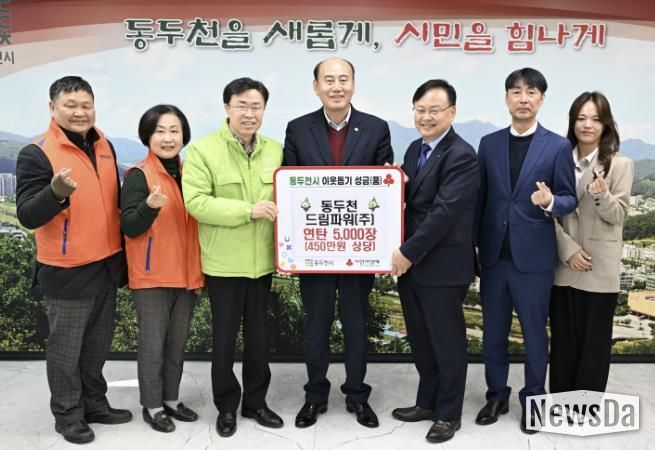 뉴스다 최광묵 기자 | 동두천드림파워는 11월 19일 동두천시청을 방문해 지역 에너지 취약계층을 지원하고자 연탄 5,000장(약 450만 원 상당)을 기탁했다.