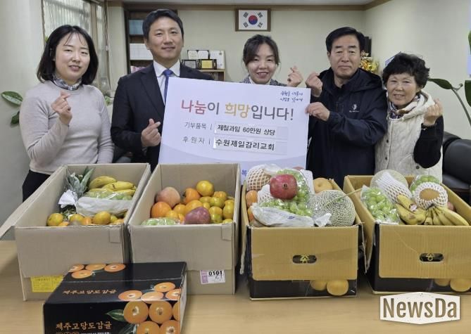 뉴스다 최광묵 기자 | 지난 18일 수원제일감리교회는 수원시 팔달구 행궁동에 어려운 이웃을 위해 과일을 기부했다고 밝혔다. 이 날 나눔받은 사과, 배, 감 등 가을의 풍성함을 담은 과일 약 5박스는 행궁동 행정복지센터에서 저소득 취약 가구에 따뜻한 마음을 담아 전달했다.