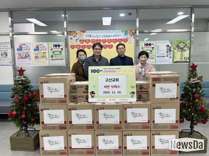 이봉득 동장은 “매년 지역사회에 온정을 전하기 위해 힘써주시는 조성조 목사님과 고산교회 성도분들께 감사드린다”며 “기탁해 주신 라면과 함께 고산교회의 따뜻한 마음을 이웃분들께 잘 전할 수 있도록 노력하겠다”고 말했다.