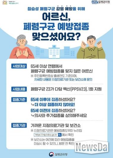 뉴스다 최광묵 기자 | 고양특례시 일산서구보건소는 최근 전국적으로 폐렴구균 감염증이 급증함에 따라 영유아와 65세 이상 고위험군의 예방 접종을 당부하고 나섰다.