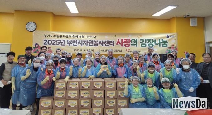 뉴스다 최광묵 기자 | 부천시는 지난 19일 부천시자원봉사센터가 ‘2025 사랑의 김장나눔’ 행사를 열고, 관내 5개의 복지기관을 통해 취약계층 375가구에 겨울철 김장김치를 전달했다고 20일 밝혔다.