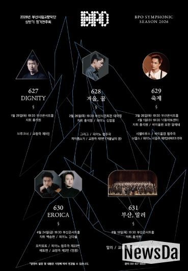 뉴스다 최광묵 기자 | 부산시립교향악단은 2026년 상반기 정기연주회 프로그램을 공개하며 새로운 시즌의 본격적인 출발을 알렸다. 올해 베를린과 뮌헨에서의 유럽 투어를 성공적으로 마무리하며 연주 역량과 해석의 폭을 확장했다는 평가를 받으며, 다가오는 시즌에 대한 기대 또한 커지고 있다.