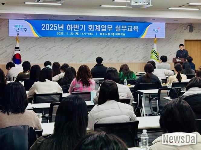 뉴스다 최광묵 기자 | 파주시는 지난 20일 시청 3층 대회의실에서 각 부서 회계 담당 공무원과 신규 공직자 등 100여 명이 참석한 가운데 녩년 하반기 회계업무 실무교육’을 실시했다고 밝혔다.