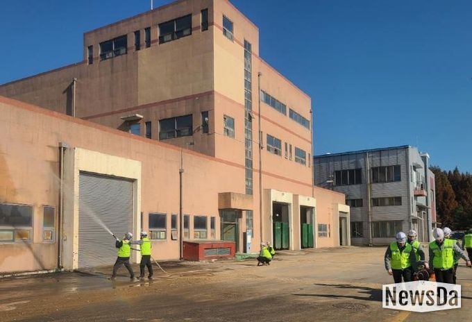 이번 훈련은 시설 내 설비동에서 화재가 발생한 상황을 가정해 진행됐으며, ▲초기 화재 진압 ▲신속한 현장 대피 ▲응급환자 이송 ▲소화기 사용 교육 등 실제 상황을 대비한 단계별 대응 절차를 중점적으로 훈련을 실시했다.