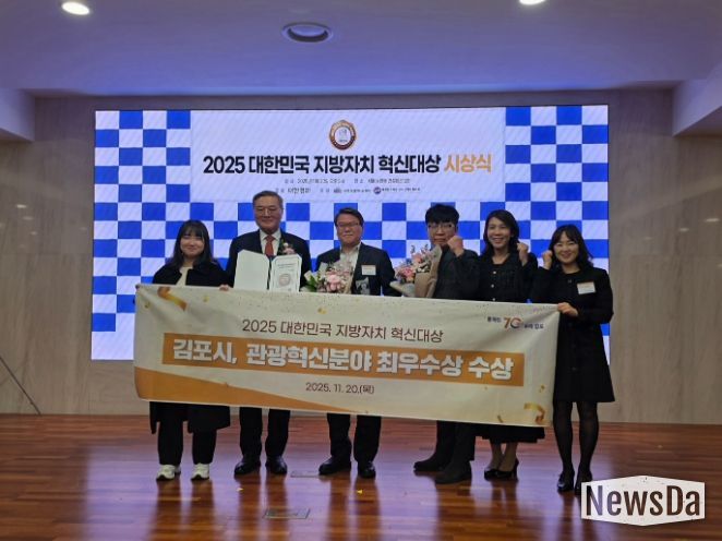 뉴스다 최광묵 기자 | 김포시가 ‘2025 대한민국 지방자치 혁신대상’ 관광혁신분야 최우수상을 수상하며, 차별화된 관광정책의 성과를 대외적으로 인정받았다. 이번 수상은 김포시가 추진해 온 관광정책의 전략성과 혁신성, 특히 접경지의 한계를 기회로 전환한 창의적 접근이 높은 평가를 받았다.