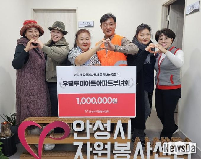 뉴스다 최광묵 기자 | 지난 19일, 안성시자원봉사센터는 우림루미아트아파트 부녀회로부터 온기나눔 후원금 100만 원을 전달받았다고 밝혔다.
