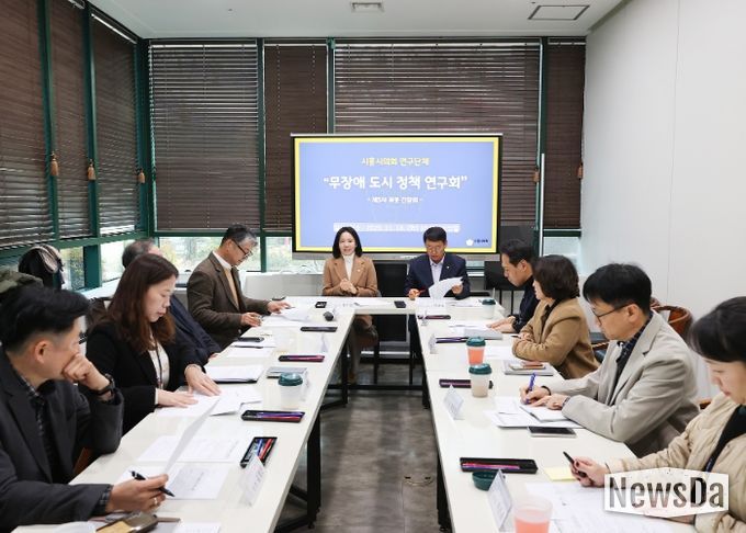 뉴스다 최광묵 기자 | 경기 시흥시의회 의원 연구단체 ‘모두를 위한 디자인, 무장애 도시 정책 연구회’가 11월 18일 의회 청사 소담뜰에서 최종 간담회를 열고, 9개월 간의 연구 활동을 마무리했다.