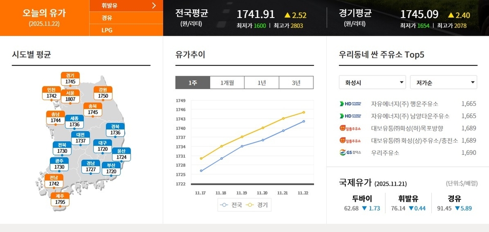 ▲화성시 휘발류 제일 싼 주유소 1665원 자유에너지(주)남양타운주유소