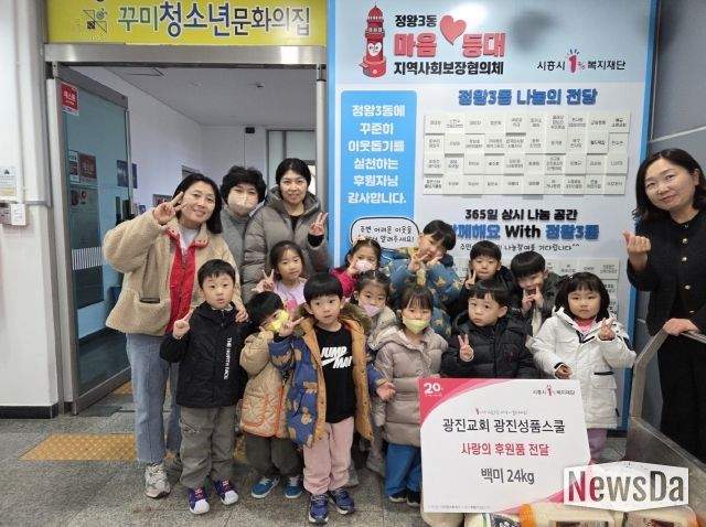 뉴스다 최광묵 기자 | 시흥시 정왕3동 행정복지센터(동장 양미현)에 지난 11월 21일 광진교회가 운영하는 광진성품스쿨 원아 12명이 방문해 이웃 사랑을 실천하기 위해 쌀을 기부했다.