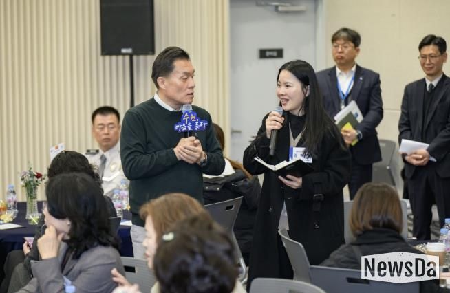 ‘2025 새빛만남- 수원, 마음을 듣다’에서 자주 볼 수 있는 풍경이다. 시민이 건의 사항을 이야기하면 담당 부서 책임자가 건의한 시민과 일정을 조율해 최대한 빨리 현장을 찾아 문제점을 확인하고, 개선 대책을 수립한다.