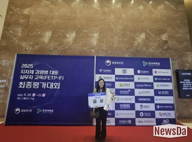 20~21일 스플라스 리솜(예산군)에서 열린 2025년 FETP-F(감염병 대응 실무자교육) 담당자 과정 최종 평가대회에서는 요양원 CRE 집단 발생의 위험 요인을 분석하고, 이에 대한 보건소 예방·관리 중재 활동을 설계·시행한 사례를 공유해 금상을 받았다.
