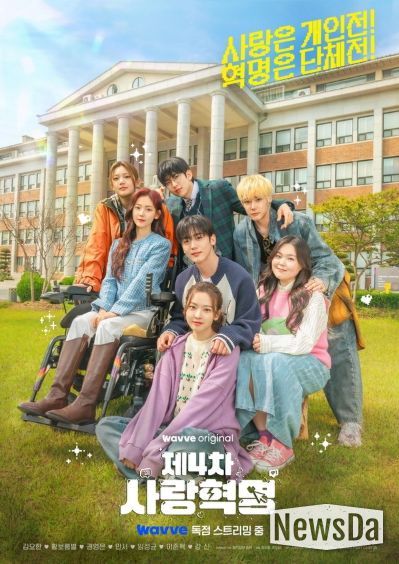 웨이브 오리지널 ‘제4차 사랑혁명’(연출 윤성호·한인미, 극본 송현주·김홍기 등 창작집단 ‘송편’, 제작 스토리몹·스튜디오CR·빈지웍스, 공동제작투자 PONY CANYON)측은 9회 공개를 앞둔 24일, 눈부신 청춘들의 다채로운 케미스트리가 설렘을 자극하는 한강대학교 완전체 포스터를 깜짝 공개했다.