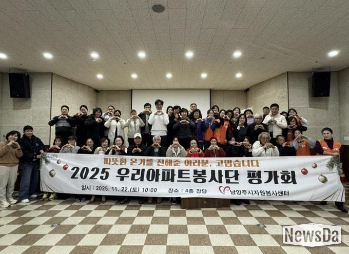 뉴스다 최광묵 기자 | 남양주시자원봉사센터에서는 11월22일 우리아파트봉사단 활동평가회를 자원봉사센터에서 봉사단 임원 및 회원 50여명이 참석한 가운데 성황리에 개최했다.