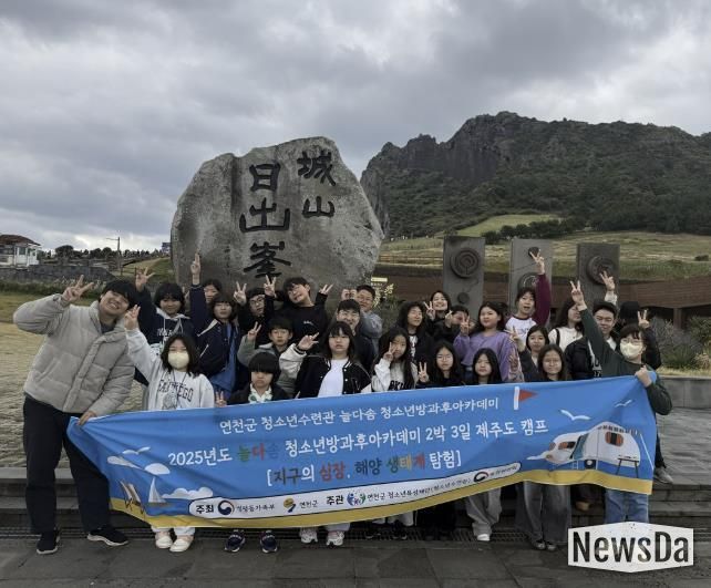 뉴스다 최광묵 기자 | (재)연천군청소년육성재단(청소년수련관 늘다솜 청소년방과후아카데미)은 지난 11월 19일부터 21일까지 제주도 일원에서 2박 3일간 ‘지구의 심장, 해양 생태계 탐험 캠프’를 안전하게 마쳤다고 밝혔다. 이번 캠프에는 늘다솜 청소년방과후아카데미 소속 청소년 23명과 지도자 3명 등 총 26명이 참여했다.