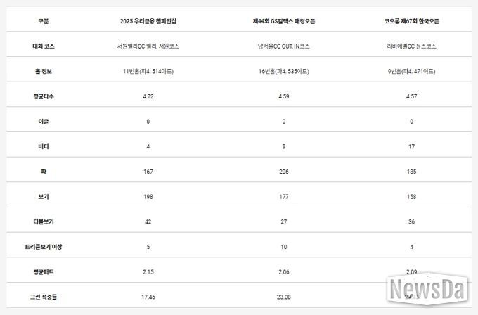 뉴스다 류대현 기자 | 2025 시즌 KPGA 투어가 열린 토너먼트 코스에서 가장 난도가 높았던 홀은 어디일까?