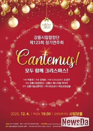 뉴스다 최광묵 기자 | 강릉시가 다채로운 공연과 전시를 마련해 시민과 관광객들에게 따뜻하고 풍성한 연말정취를 선사한다. 세계적인 현대미술 작가 캐서린 번하드 특별전과 국내 작가 콰야의 전시를 비롯해 강릉시립합창단의 제123회 정기연주회 및 기획공연, 초당작은도서관 크리스마스 이벤트 등으로 문화와 겨울 바다를 동시에 즐길 수 있는 강릉만의 특별한 연말 분위기를 만들 것으로 기대된다.
