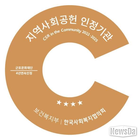 뉴스다 최광묵 기자 | 군포문화재단이 지역사회공헌 인정제 4년 연속 선정이라는 성과를 거두며, 지역사회 공익활동에서 지속성과 우수성을 다시 한 번 인정받았다. 이는 전국 문화재단 가운데 유일하게 4년 연속 선정된 사례이다.