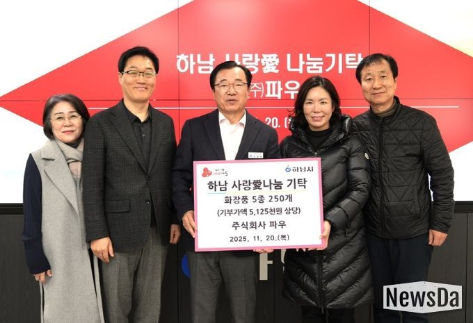 뉴스다 최광묵 기자 | 11월 20일 목요일 하남시청에서 ㈜파우 FAU 대표(최미화)는 하남시가족센터에 하남 사랑愛나눔 기탁으로 5,125,000원 상당의 화장품 5종 250개를 지정 기탁했다.