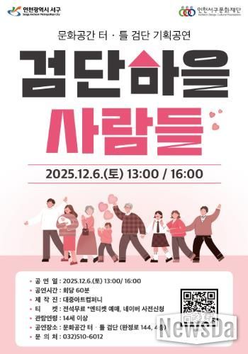 뉴스다 최광묵 기자 | 오는 12월 6일, 인천서구문화재단이 문화공간 터·틀(검단)의 개관을 기념하는 두 번째 기획공연으로 연극 ‘검단마을 사람들’을 선보인다.