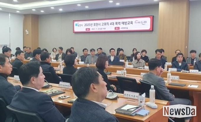 뉴스다 최광묵 기자 | 포천시는 28일 시청 시정회의실에서 5급 이상 고위직 공무원 70여 명을 대상으로 성희롱·성폭력·가정폭력·성매매 등 4대 폭력 통합 예방교육을 실시했다.