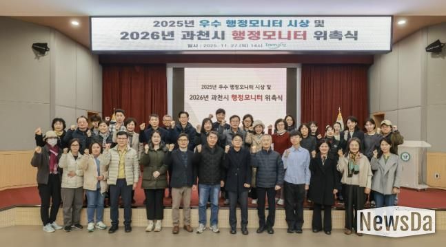 뉴스다 최광묵 기자 | 과천시는 지난 27일 시청 대강당에서 ‘2026년 행정모니터 위촉식’ 및 ‘2025년 행정모니터 활동 우수자 시상식’을 개최했다.