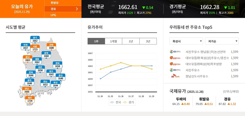 ▲화성시 경 유 제일 싼 주유소 1599원 향남신도시주유소