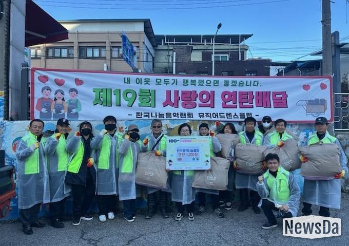 뉴스다 최광묵 기자 | 의정부시 흥선동행정복지센터는 11월 28일 한국나눔음악협회가 ‘100일간 사랑릴레이 배턴 잇기’에 동참해 흥선동 소외계층에게 사랑의 연탄 1천200장을 전달했다고 밝혔다.