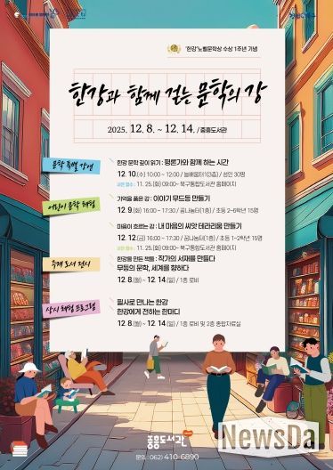 문학강연은 강지희 평론가가 강사로 나서 한강 작가의 『소년이 온다』, 『작별하지 않는다』 등 시대의 아픈 역사와 인간의 존엄을 다룬 작품을 중심으로 작가의 서사와 문학적 메시지를 깊이 있게 탐구한다.