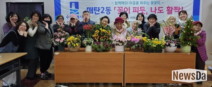뉴스다 최광묵 기자 | 지난 1일, 매탄2동 지역사회보장협의체는 특화사업 중 하나인 ‘꽃이 피듯, 나도 활짝!’꽃꽂이 교실을 마무리하며 어르신들의 작품으로 ‘우리들의 작은전시회’를 매탄2동 행정복지센터 민원실에 개최했으며, 4일까지 전시한다.