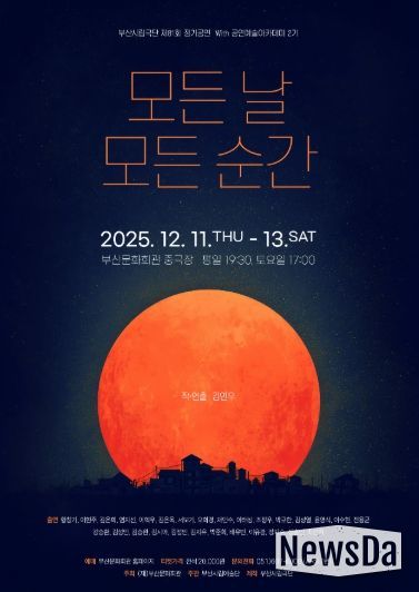 뉴스다 최광묵 기자 | 부산시립극단은 오는 12월 11일부터 13일까지 부산문화회관 중극장에서 제81회 정기공연 〈모든 날, 모든 순간〉을 개최한다. 이번 공연은 김민우 객원연출이 참여해 새로운 시각과 감성으로 작품을 이끈다.