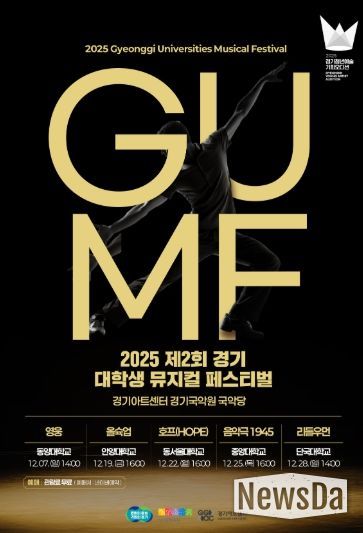 뉴스다 최광묵 기자 | 경기문화재단은 오는 12월 7일부터 28일까지 용인 소재 경기국악원 국악당에서 ‘제2회 경기 대학생 뮤지컬 페스티벌(GUMF)’을 개최한다.