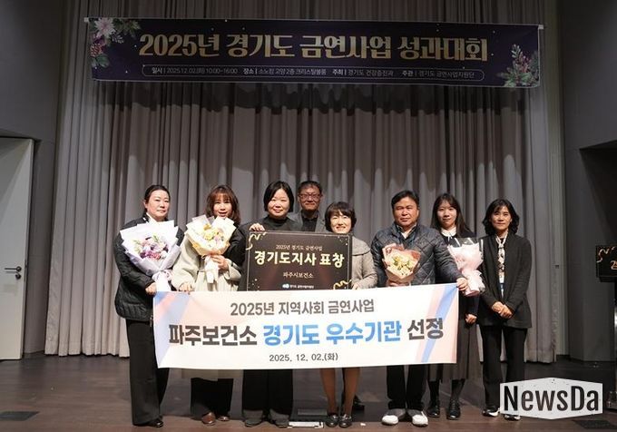 뉴스다 최광묵 기자 | 파주시는 2025년 경기도 지역사회 금연사업 평가에서 금연환경 조성과 흡연율 감소에 기여한 공로를 인정받아 지난 2일 경기도지사 기관 표창(우수기관)을 수상했다고 밝혔다.