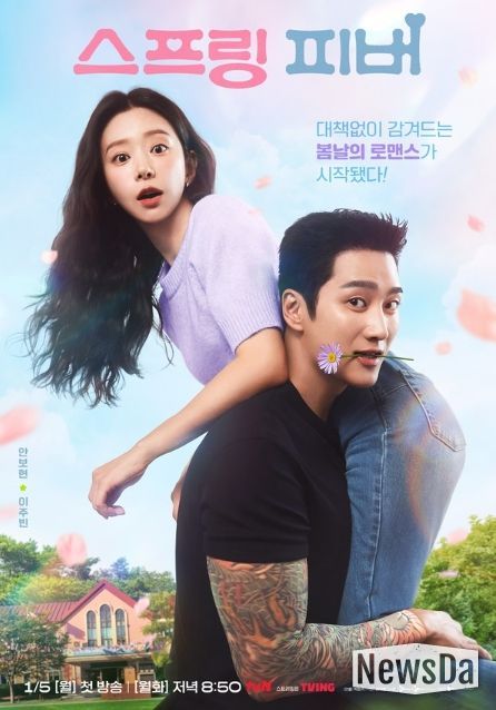 2026년 1월 5일(월) 첫 방송 예정인 tvN 새 월화드라마 ‘스프링 피버’(연출 박원국 /극본 김아정 /기획 CJ ENM STUDIOS /제작 본팩토리)는 찬바람 쌩쌩부는 교사 윤봄(이주빈 분)과 불타는 심장을 가진 남자 선재규(안보현 분)의 얼어붙은 마음도 녹일 봄날의 핫!핑크빛 로맨스다.