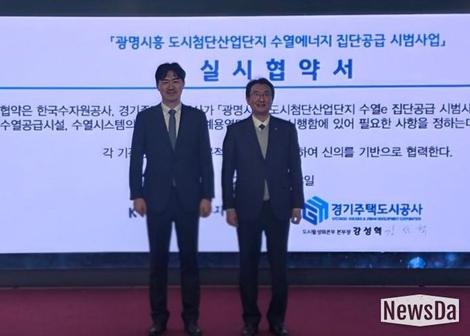 뉴스다 최광묵 기자 | 경기주택도시공사(GH)는 3일 GH 수원 본사 9층 역량개발센터에서 한국수자원공사(K-water)와 함께 ‘광명시흥 도시첨단산업단지 수열에너지 집단공급 시범사업’ 추진을 위한 실시협약을 체결했다고 밝혔다. 이 자리에는 양 기관 관계자 약 30명이 참석했다.