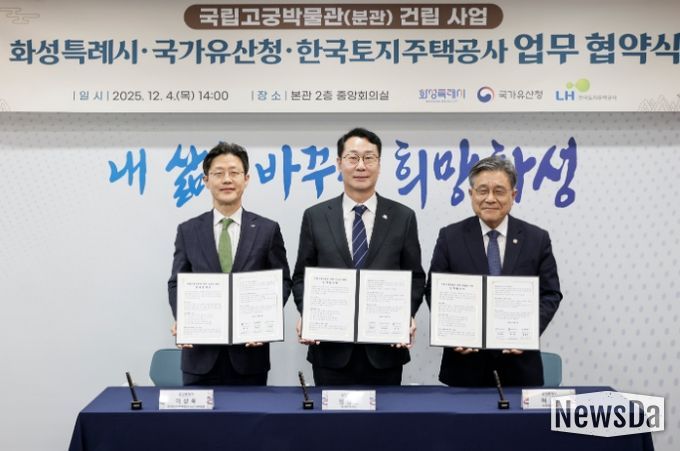 이날 시청 중앙회의실에서 열린 협약식에는 정명근 화성특례시장, 허민 국가유산청장, 이상욱 한국토지주택공사 사장직무대행(부사장)이 참석해, 분관 건립을 위한 상호 협력을 약속했다.