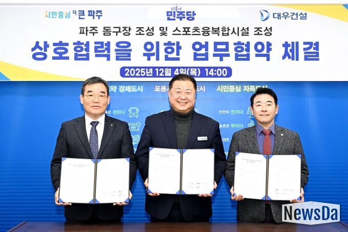 시는 지난 4일 박정 국회의원 및 대우건설과 함께 '파주 돔구장 및 스포츠 융복합시설 조성'과 관련한 상호협력 업무협약(MOU)을 체결했다.