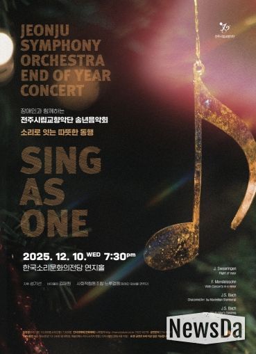 노은영 전주시 문화체육관광국장은 “이번 공연은 연말 감성을 담은 음악 속에서 사회적 포용의 가치를 공유하는 뜻깊은 무대가 될 것”이라며 “시민들이 함께 참여해 예술이 전하는 따뜻한 메시지를 나누길 바란다”고 말했다.