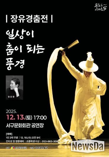 뉴스다 최광묵 기자 | 서구문화회관은 12월 13일 오후 5시 서구문화회관 공연장에서 장유경 무용단을 초청하여‘장유경춤전 - 일상이 춤이 되는 풍경’공연을 개최한다.