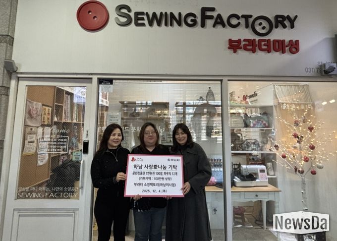 뉴스다 최광묵 기자 | 하남시 드림스타트는 12월 4일 부라더 소잉팩토리 하남미사점으로부터 문화상품권 100만원과 수제 생리대 파우치 12개를 전달받았다고 밝혔다.