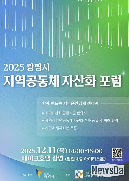 시는 오는 11일 오후 2시 테이크호텔 광명 별관 4층 아이리스홀에서 ‘2025년 광명시 지역공동체 자산화 포럼’을 개최한다.