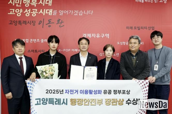 뉴스다 최광묵 기자 | 고양특례시는 행정안전부가 주관한 ‘2025년 자전거 이용 활성화 유공 포상'에서 행정안전부 장관 표창을 수상했다고 밝혔다.