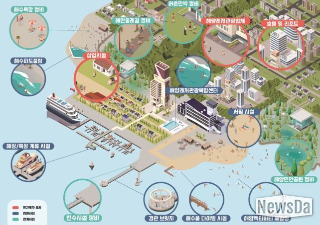 올해 새롭게 추진하는 복합해양레저관광도시 조성사업은 지역의 고유 매력을 활용하고, 민간투자와 연계하여 놀거리(레저), 볼거리(관광), 쉴거리(휴양) 등 해양레저관광 기능을 집적해 대규모 해양관광도시를 조성하는 사업이다.