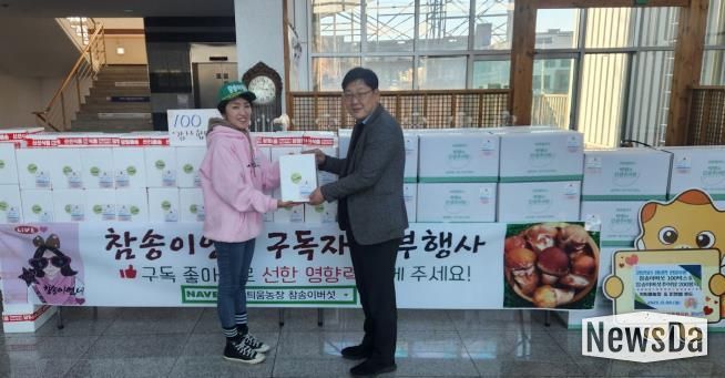 지난 8일 관내 버섯재배농가 싹틔움농장과 즉석조리식품 제조기업 피앤엘푸드는 정남면에 각각 영양이 풍부한 참송이버섯 100박스와 간편하게 섭취할 수 있는 참송이추어탕 200개를 전달했다.